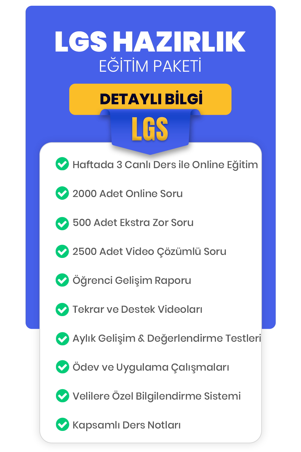 Haftada 3 canlı ders, okulun attığı temeli sağlamlaştırırken; 2000 online soru, 500 ekstra zor soru ve 2500 video çözümlü soru ile sınavın gizli kapılarını açar. Her adımda pedagojik özen, her kazanımda düzenli öğrenci gelişim raporu bulunur.